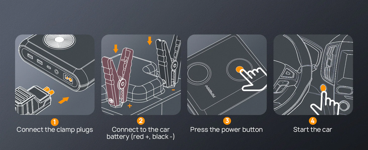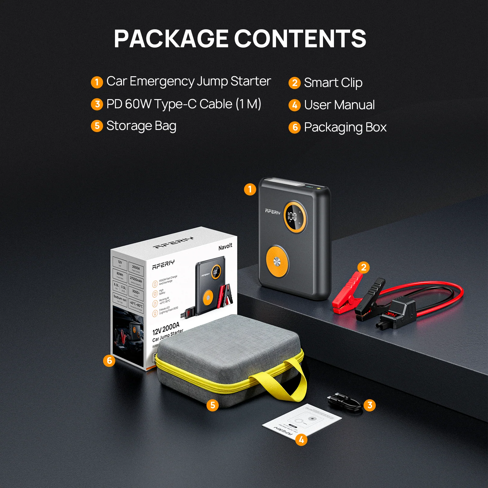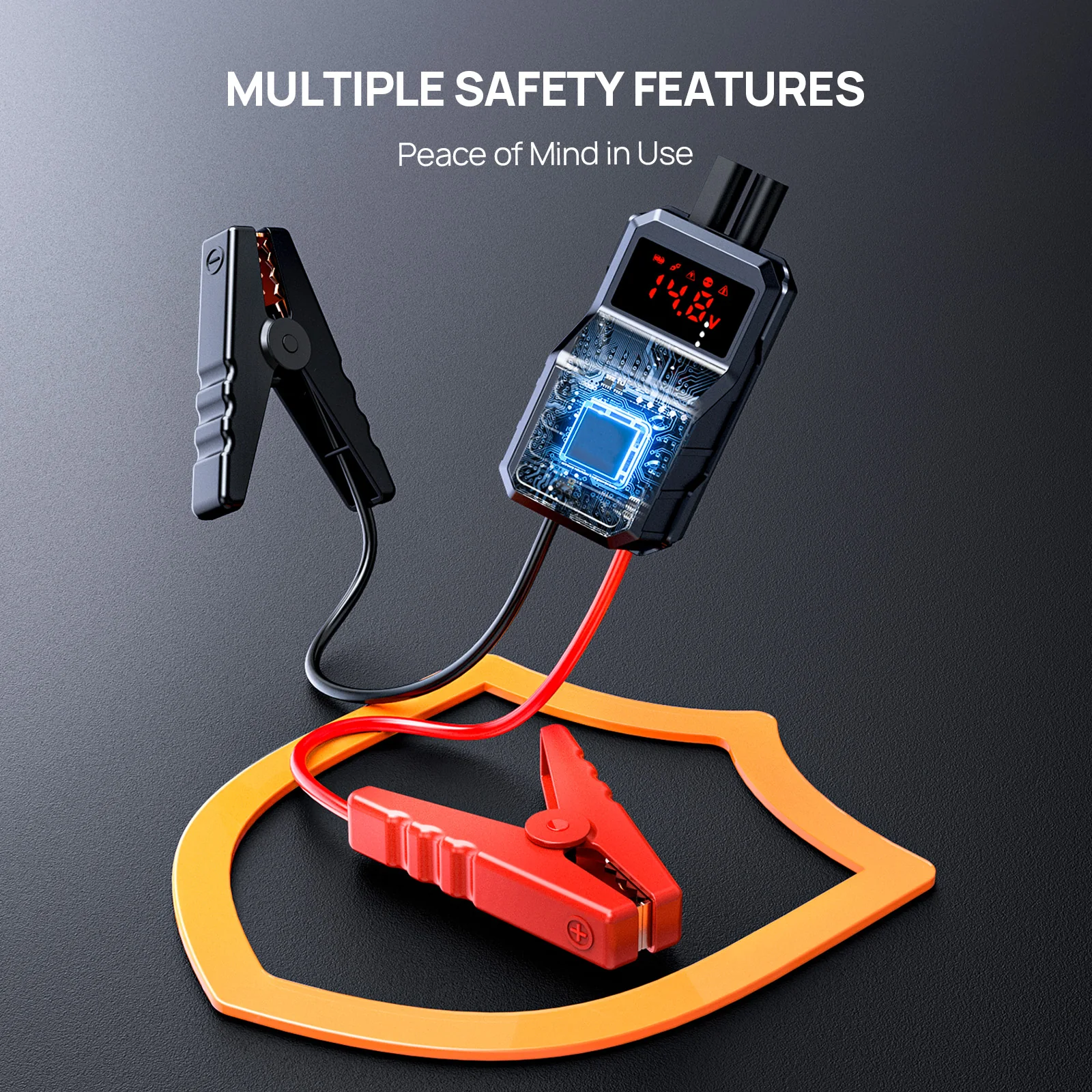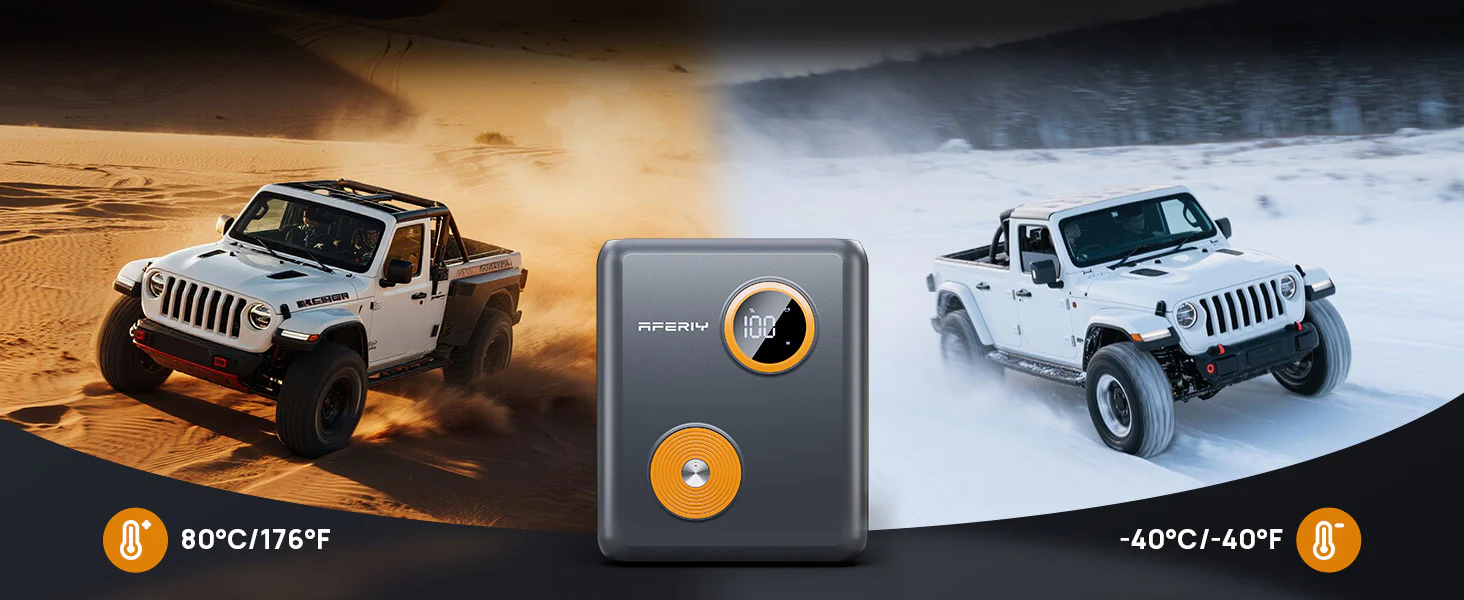 Equipped with protection against overvoltage, overcurrent, short circuits, and reverse polarity, the AFERIY 12V jump starter ensures maximum safety even in extreme conditions.