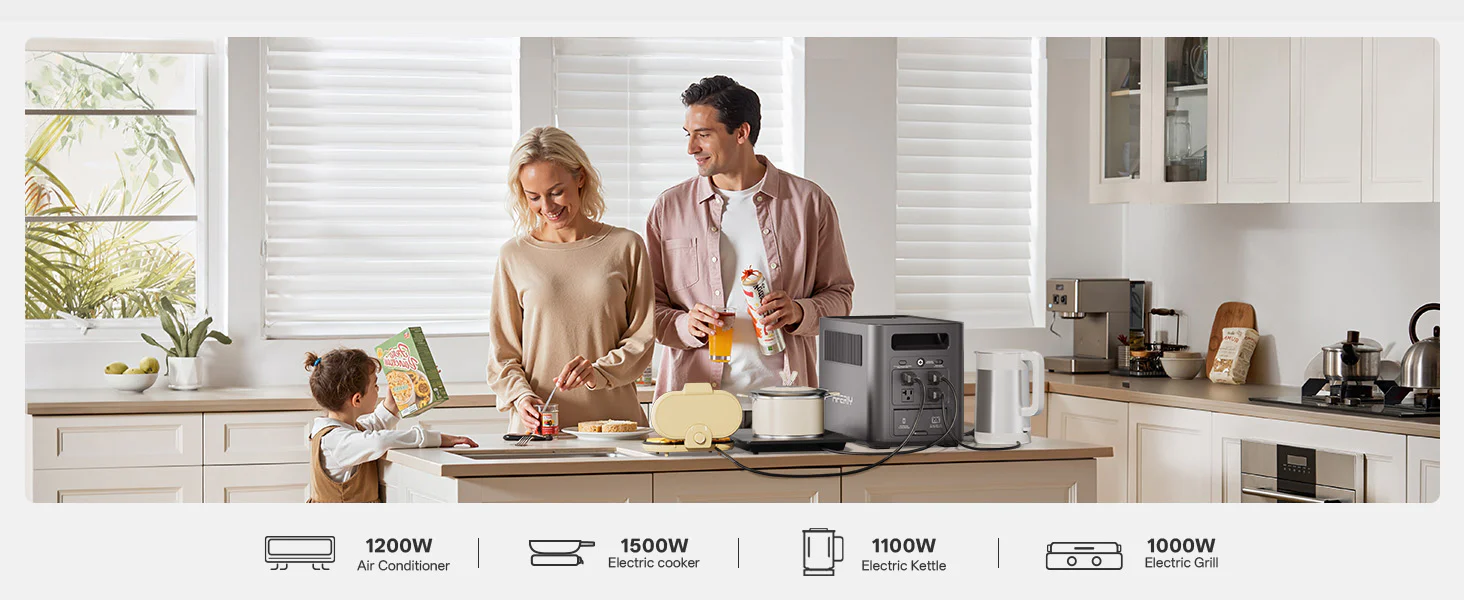 Power almost any appliance safely—from refrigerators and microwaves to laptops and power tools. With 1800W continuous output, and 1024Wh energy storage, AFERIY P180 keeps your devices running at home, outdoors, or during emergencies.