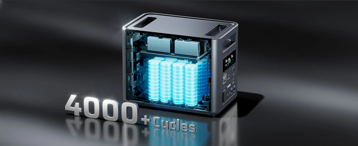 Battery lifespan depends on battery type. LiFePO₄ batteries often last 3,000–5,000 cycles.