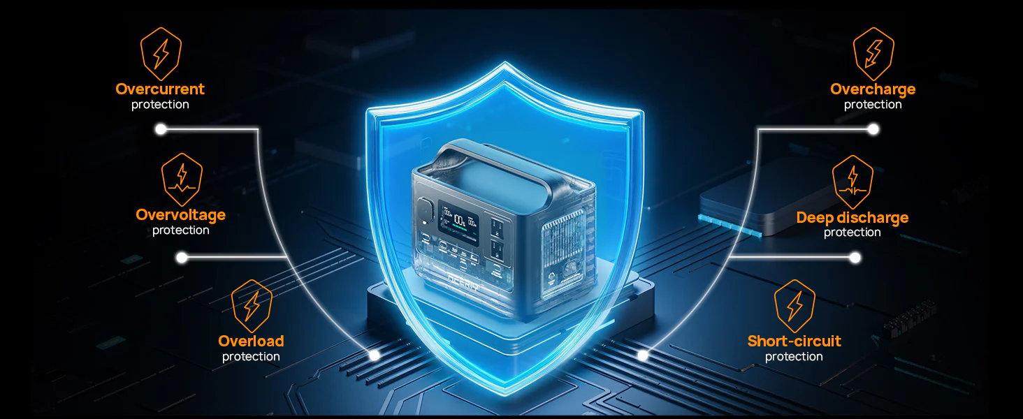 Advanced Battery Management System (BMS) ensures safety with 6 protection layers: overvoltage, over-discharge, overcurrent, overheating, low temperature, and short circuit. Guarantees reliable, long-lasting performance.