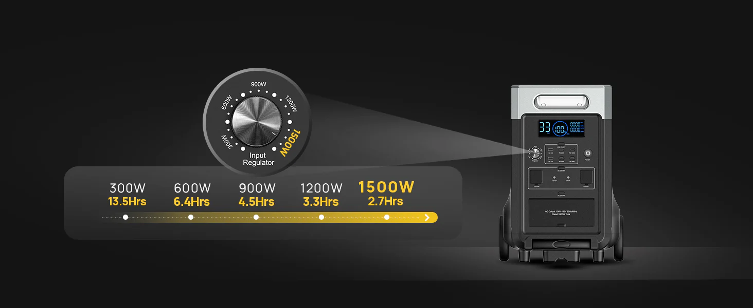 With 5 adjustable levels (300W, 500W, 900W, 1200W, and 1500W), the AFERIY P310-EC allows you to customize the input power for various environments, optimizing charging efficiency and ensuring the best performance for your needs.