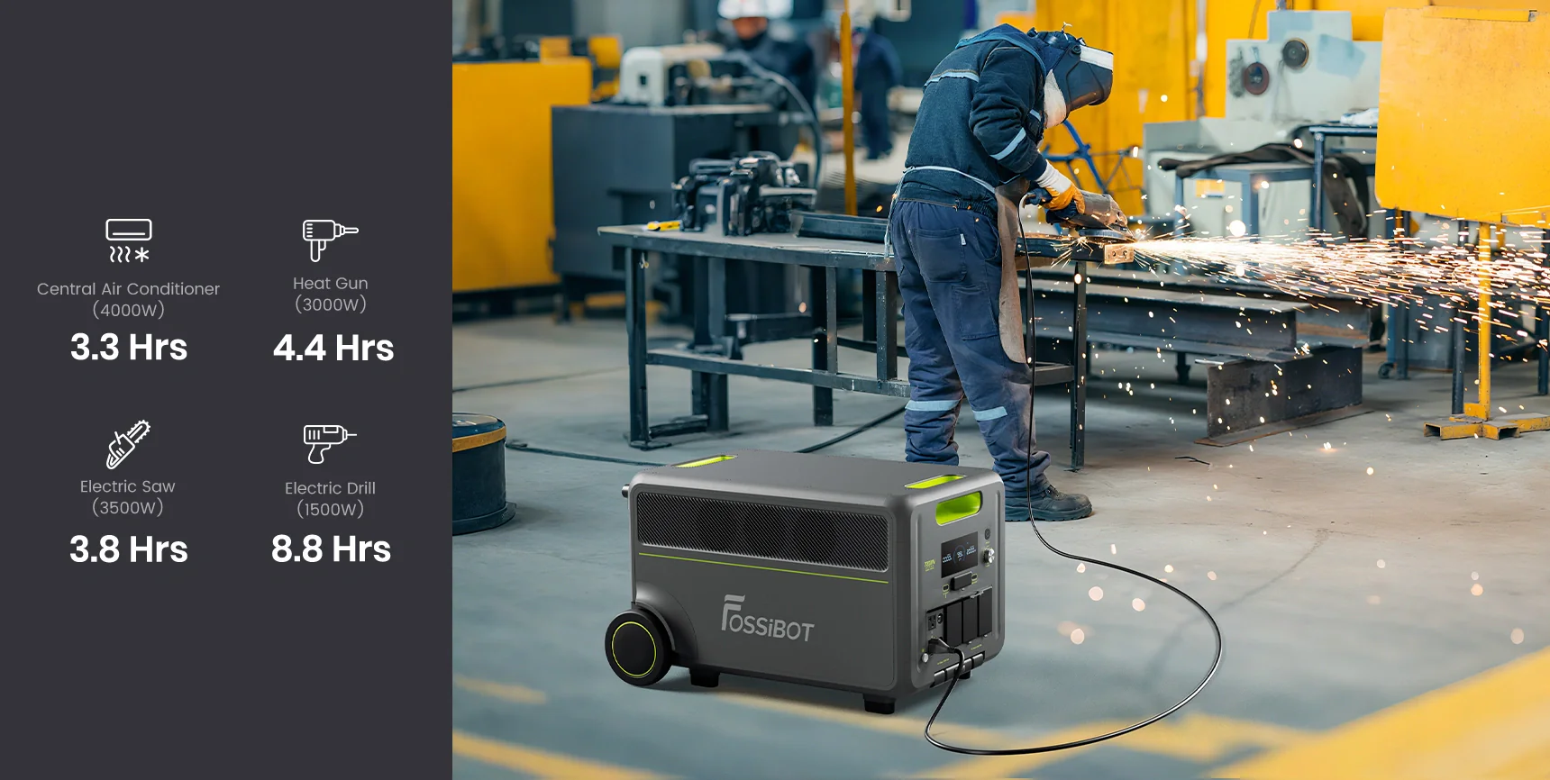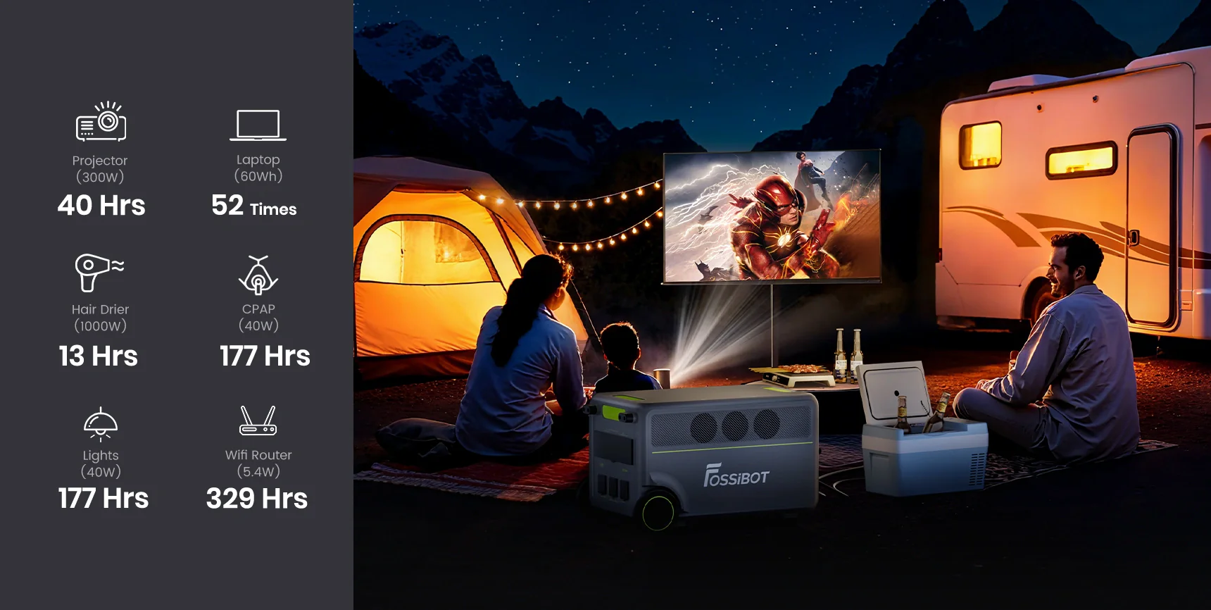 Designed for powering appliances such as mini-fridges, TVs, and power tools.