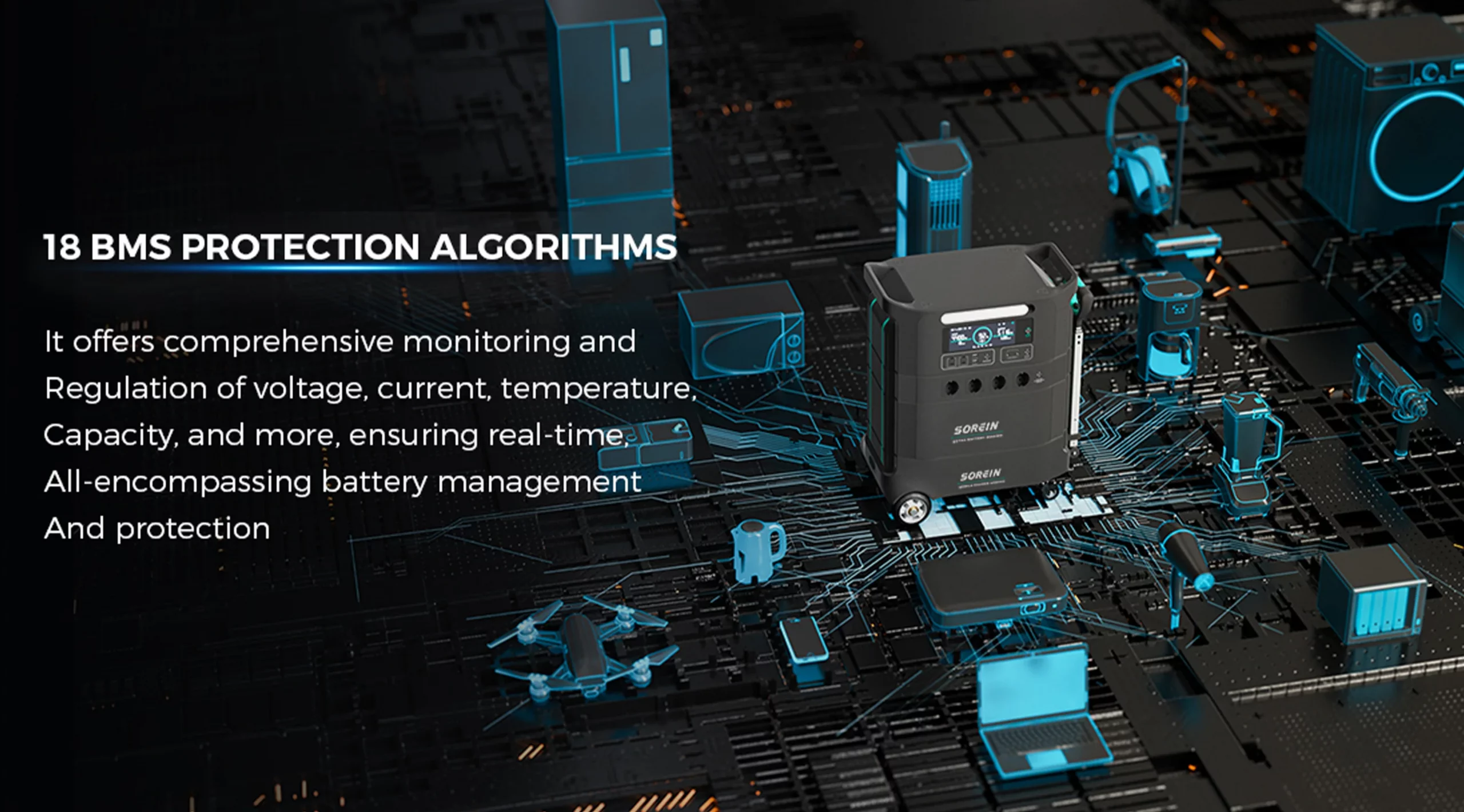 Charge Controller – Manages incoming power from wall outlets, vehicles, or solar panels.