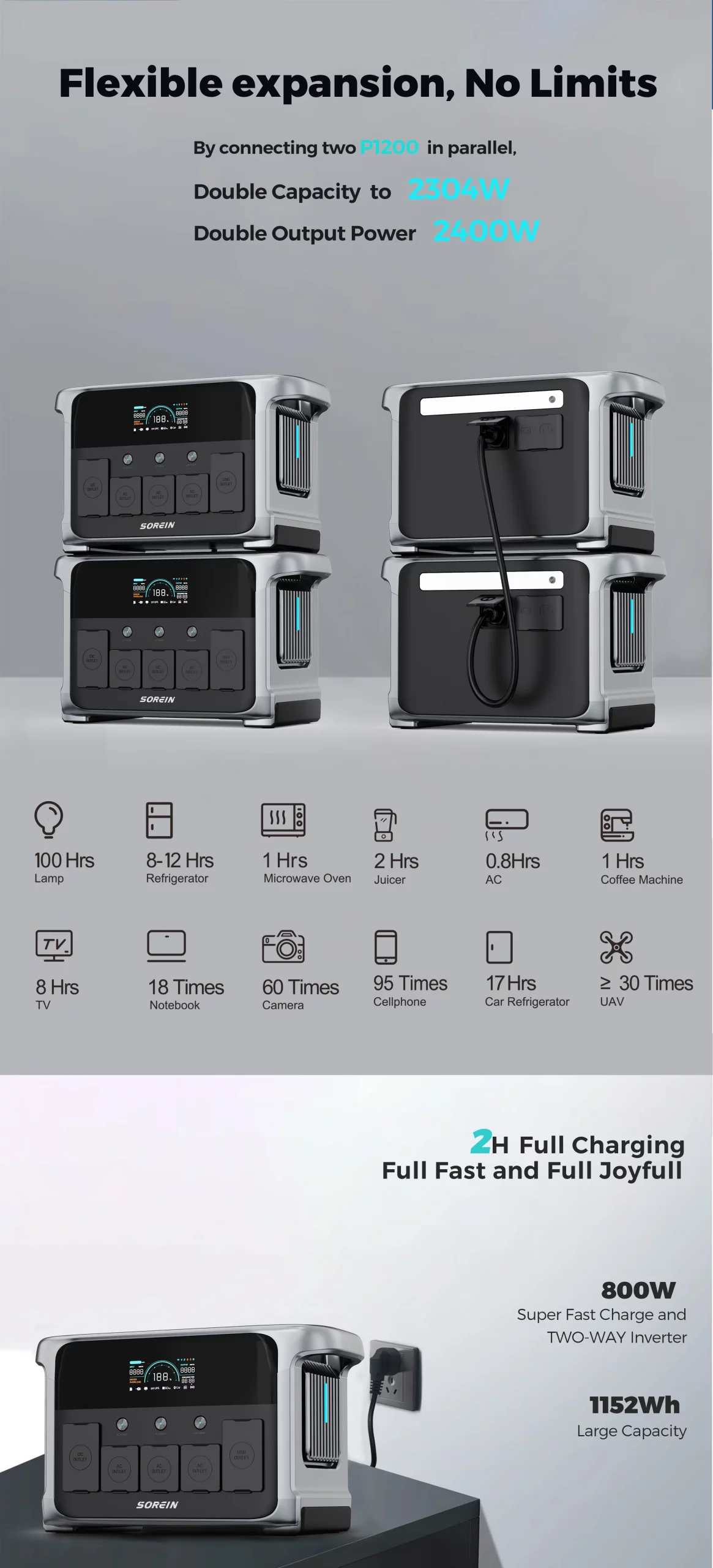 Designed for powering appliances such as mini-fridges, TVs, and power tools.